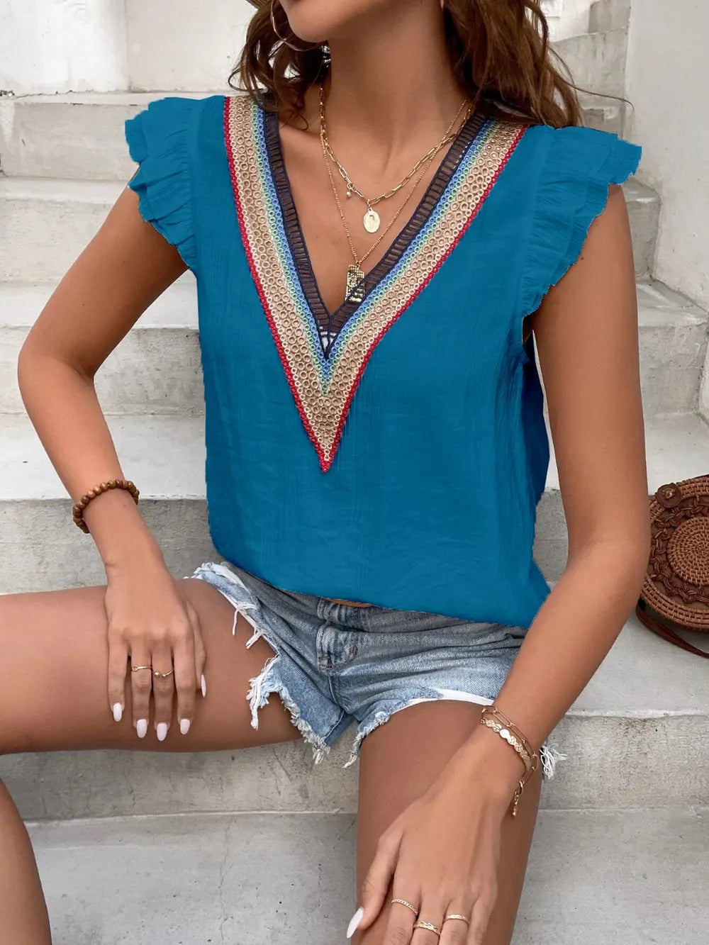 Camicetta con maniche a cappuccio e scollo a V arricciato